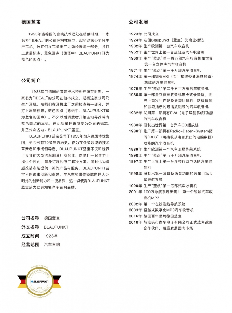 德国BLAUPUNKT蓝宝产品介绍